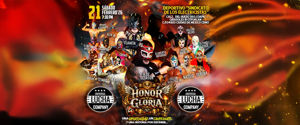 Universal lucha company presenta el evento honor y gloria, donde saldrá el primer retador por el campeonato supremo ULC